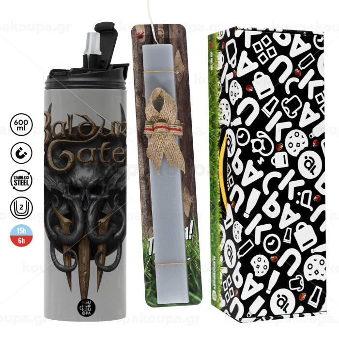Baldur's Gate, Easter candle with Grey Tumbler Thermo 600ml & aromatic flat candle (30cm) (GREY)