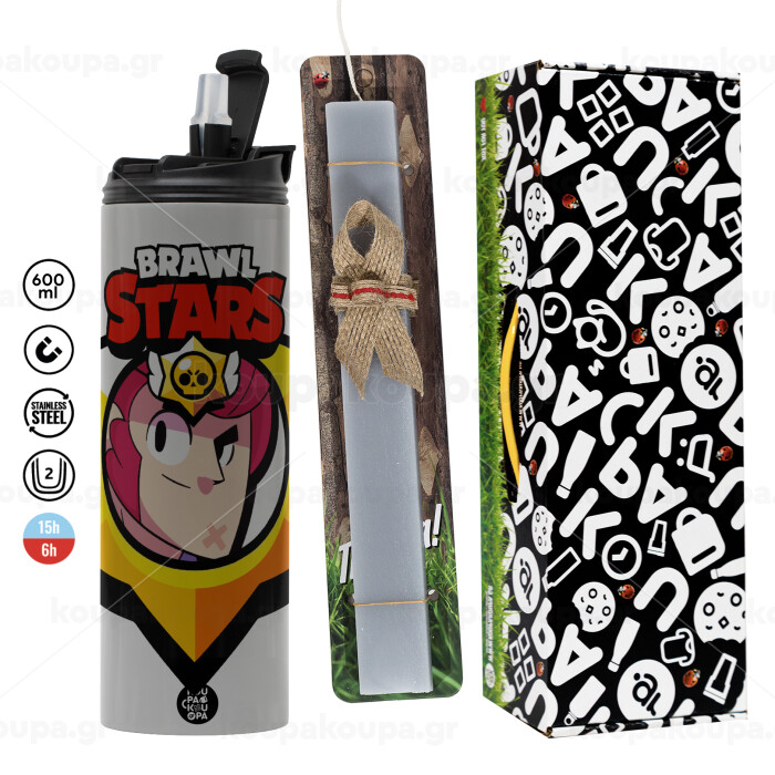 Brawl Stars Colt, Easter candle with Grey Tumbler Thermo 600ml & aromatic flat candle (30cm) (GREY)