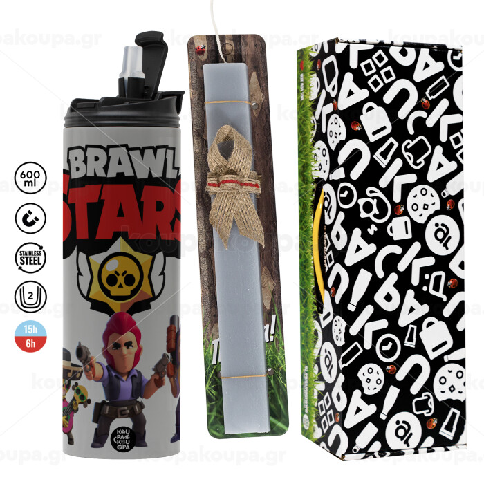 Brawl Stars Desert, Easter candle with Grey Tumbler Thermo 600ml & aromatic flat candle (30cm) (GREY)