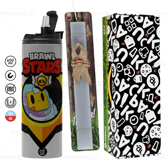 Brawl Stars Sprout, Easter candle with Grey Tumbler Thermo 600ml & aromatic flat candle (30cm) (GREY)