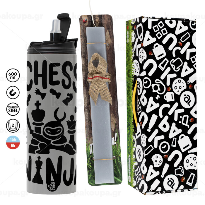 Chess ninja, Easter candle with Grey Tumbler Thermo 600ml & aromatic flat candle (30cm) (GREY)