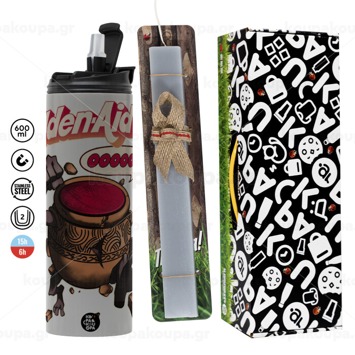 Elden-Aid, Elden Ring inspired , Easter candle with Grey Tumbler Thermo 600ml & aromatic flat candle (30cm) (GREY)