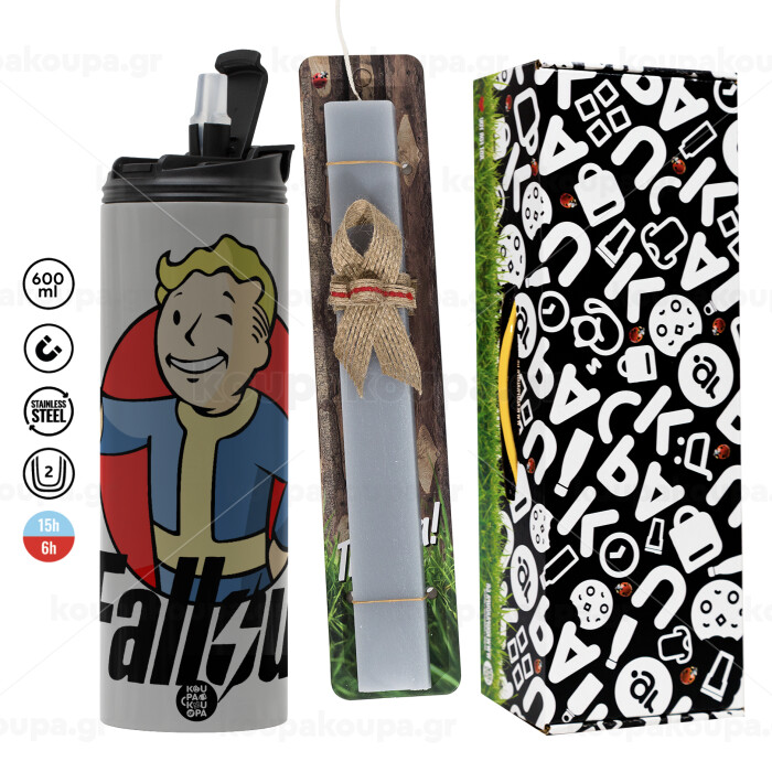 Fallout Vault Boy, Easter candle with Grey Tumbler Thermo 600ml & aromatic flat candle (30cm) (GREY)