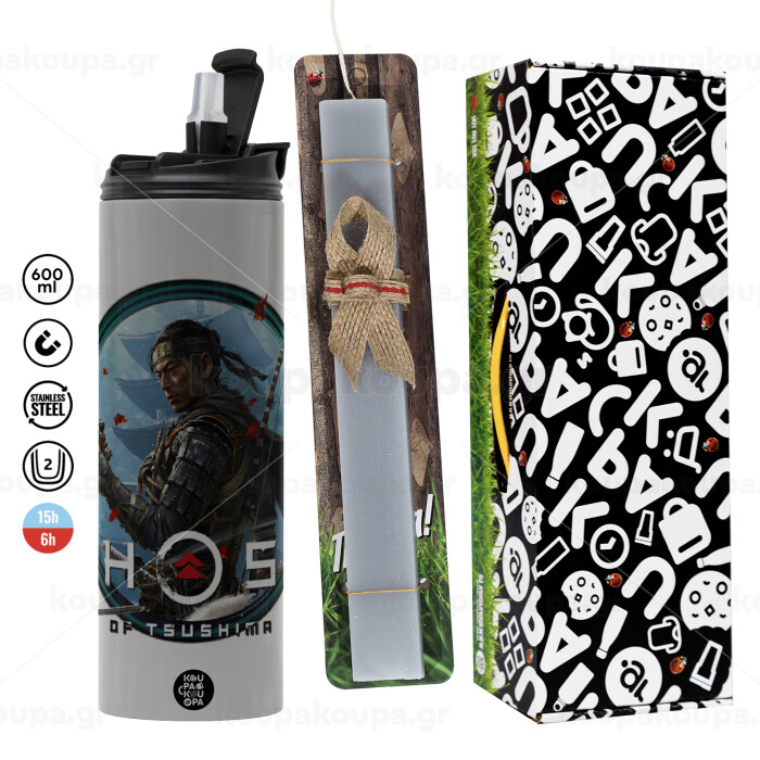 Ghost of Tsushima, Easter candle with Grey Tumbler Thermo 600ml & aromatic flat candle (30cm) (GREY)