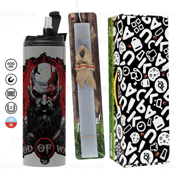 God of war, Easter candle with Grey Tumbler Thermo 600ml & aromatic flat candle (30cm) (GREY)