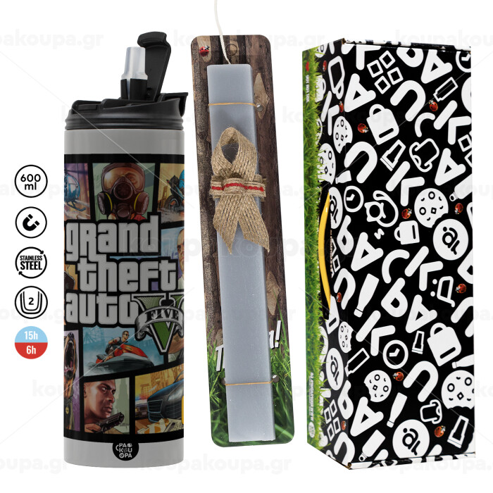 GTA V, Easter candle with Grey Tumbler Thermo 600ml & aromatic flat candle (30cm) (GREY)