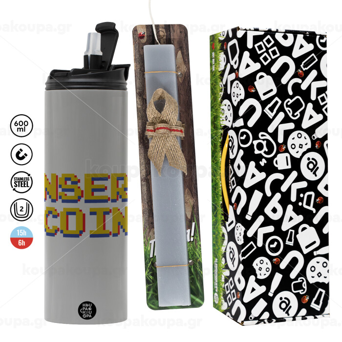 Insert coin!!!, Easter candle with Grey Tumbler Thermo 600ml & aromatic flat candle (30cm) (GREY)