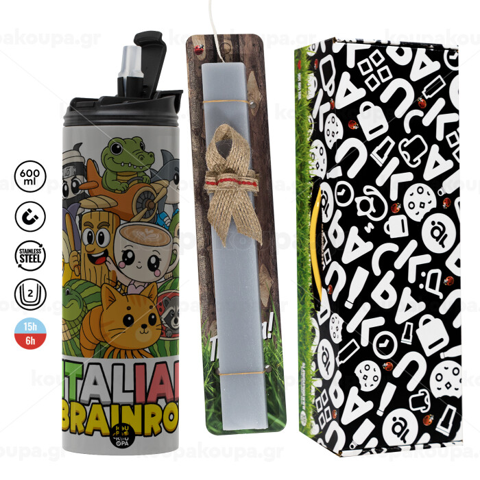 Italian Brainrot friends, Easter candle with Grey Tumbler Thermo 600ml & aromatic flat candle (30cm) (GREY)