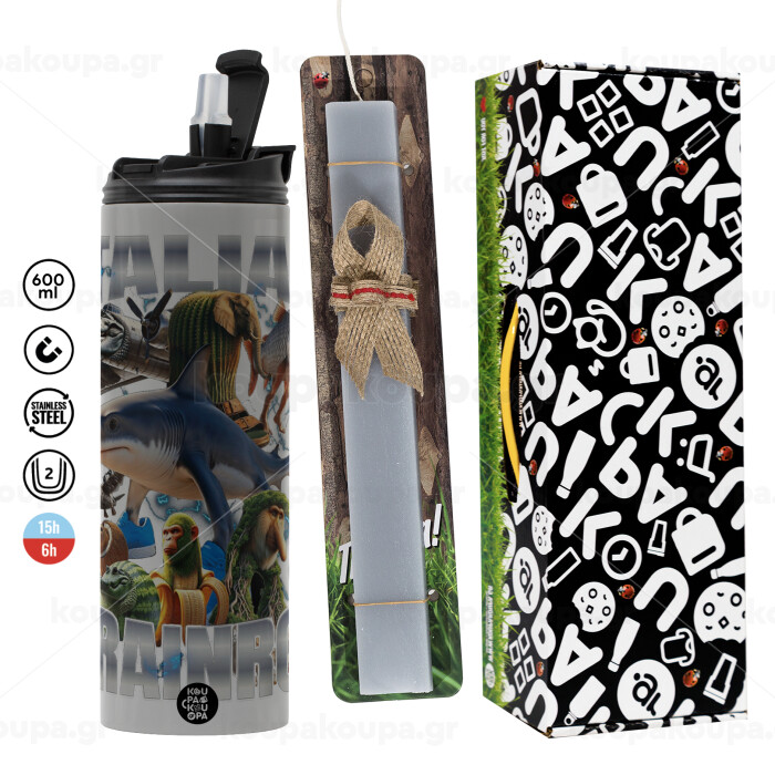 Italian Brainrot, Easter candle with Grey Tumbler Thermo 600ml & aromatic flat candle (30cm) (GREY)