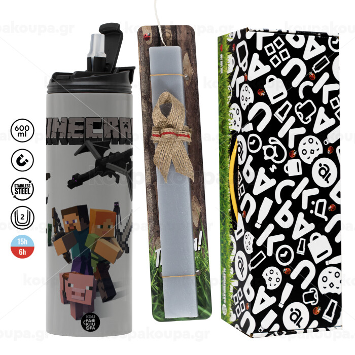 Minecraft Alex, Easter candle with Grey Tumbler Thermo 600ml & aromatic flat candle (30cm) (GREY)