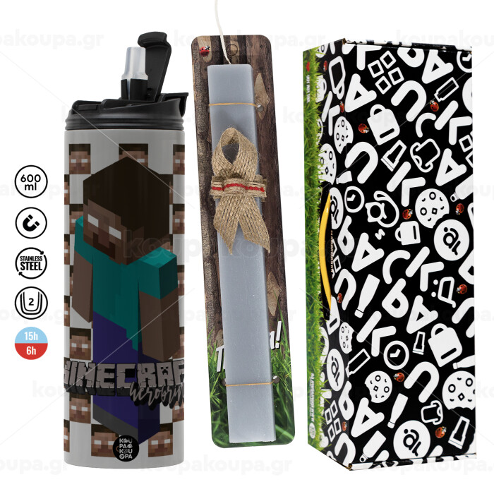 Minecraft herobrine, Easter candle with Grey Tumbler Thermo 600ml & aromatic flat candle (30cm) (GREY)