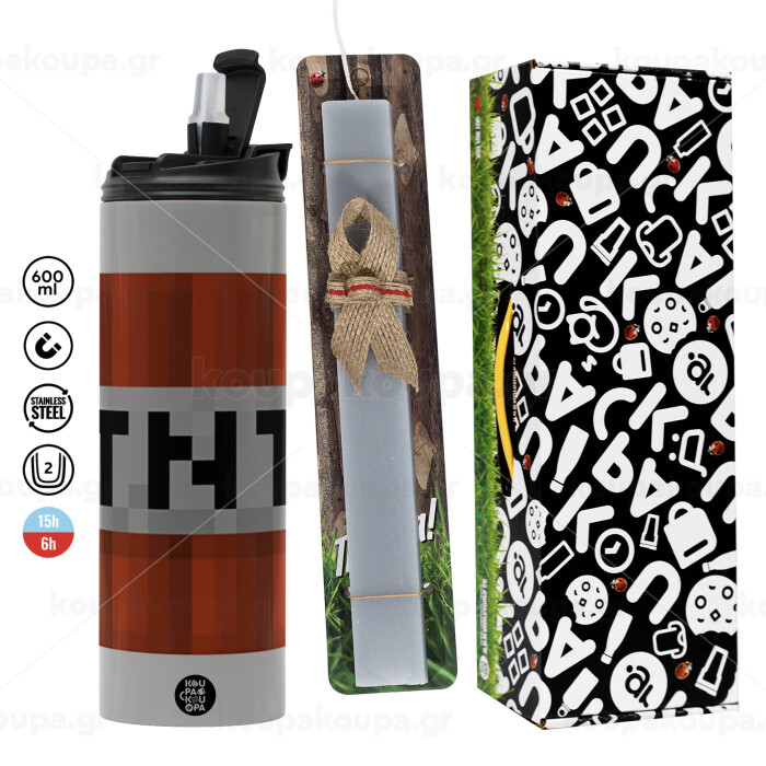 Minecraft TNT, Easter candle with Grey Tumbler Thermo 600ml & aromatic flat candle (30cm) (GREY)