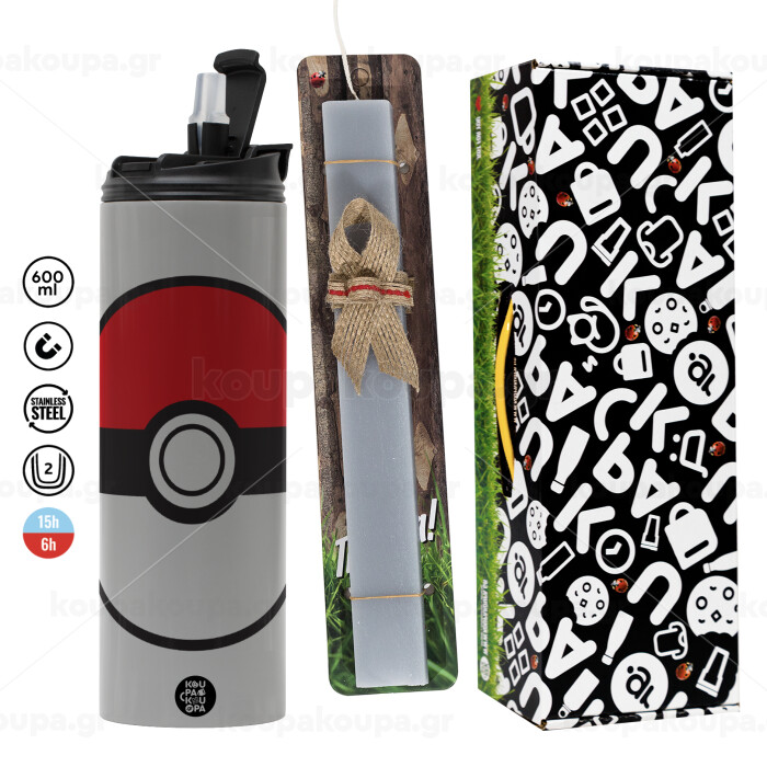 Pokemon ball, Easter candle with Grey Tumbler Thermo 600ml & aromatic flat candle (30cm) (GREY)
