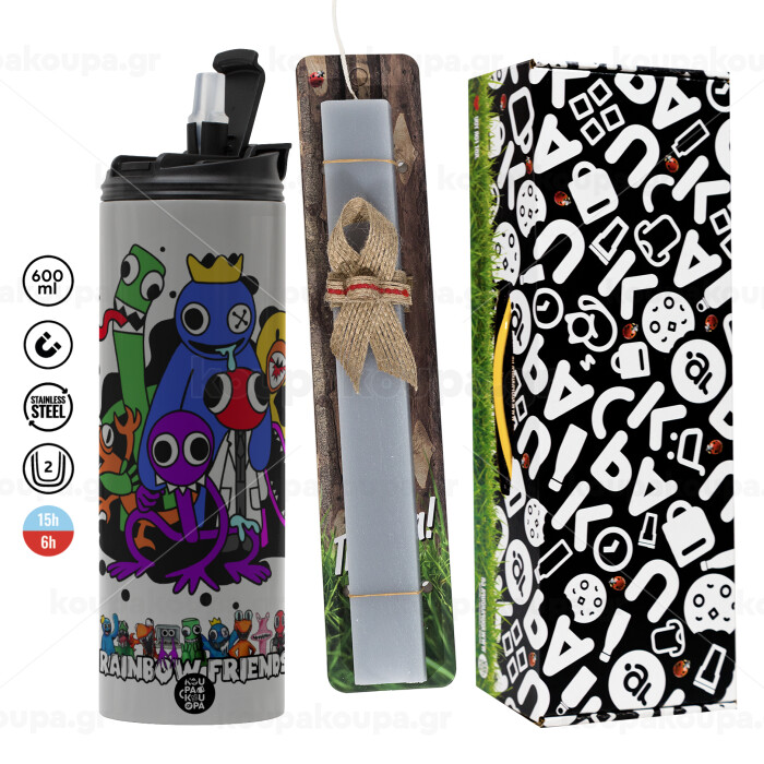 Rainbow friends, Easter candle with Grey Tumbler Thermo 600ml & aromatic flat candle (30cm) (GREY)