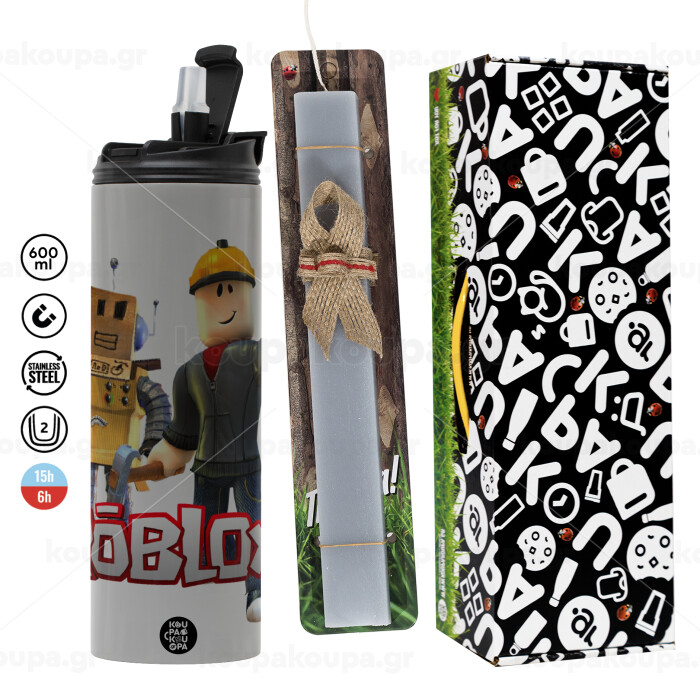 Roblox, Easter candle with Grey Tumbler Thermo 600ml & aromatic flat candle (30cm) (GREY)