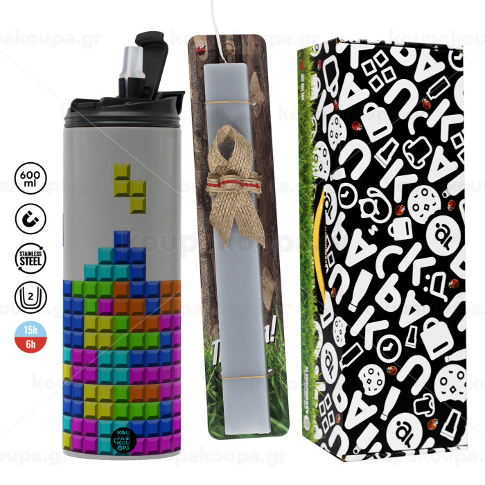 Tetris blocks, Easter candle with Grey Tumbler Thermo 600ml & aromatic flat candle (30cm) (GREY)