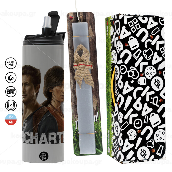 Uncharted, Easter candle with Grey Tumbler Thermo 600ml & aromatic flat candle (30cm) (GREY)
