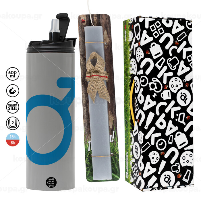 MALE, Easter candle with Grey Tumbler Thermo 600ml & aromatic flat candle (30cm) (GREY)