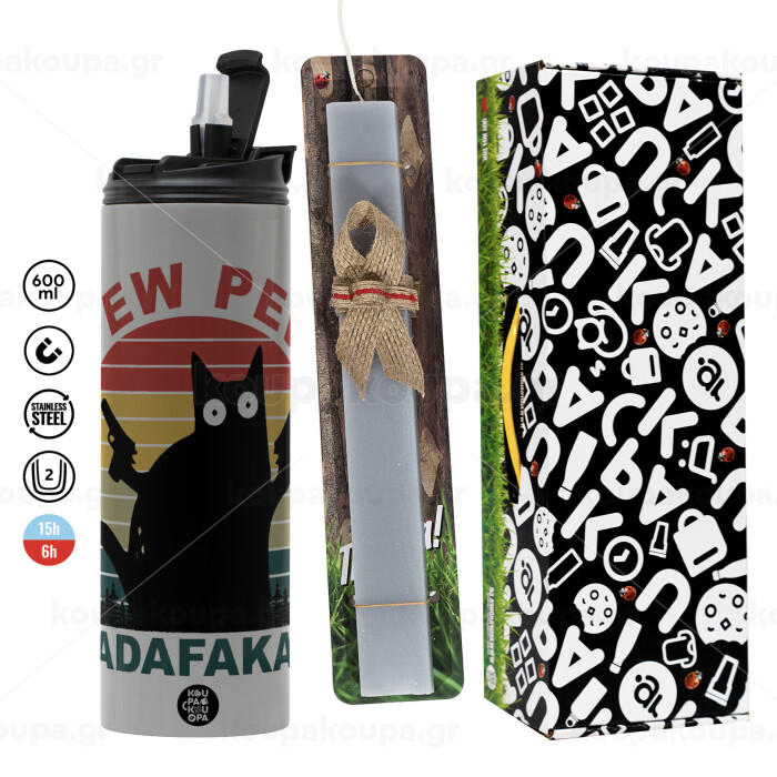 PEW PEW madafakas, Easter candle with Grey Tumbler Thermo 600ml & aromatic flat candle (30cm) (GREY)
