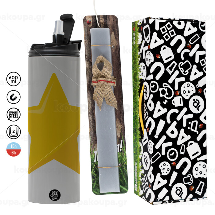 Star, Easter candle with Grey Tumbler Thermo 600ml & aromatic flat candle (30cm) (GREY)