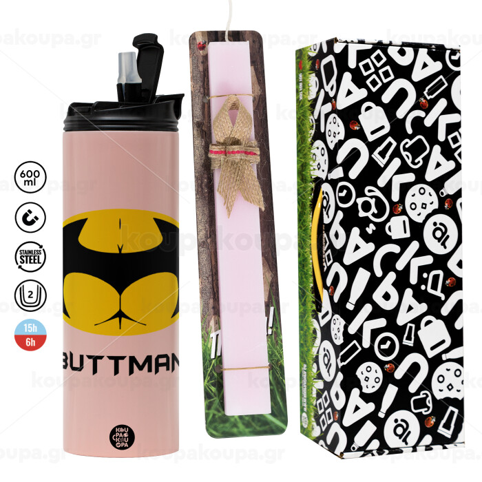 Buttman, Easter candle,Travel Tumbler 2 Lids, with metal straw & cleaning brush & aromatic flat candle (30cm) (PINK)
