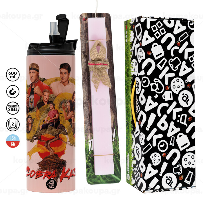 Cobra Kai tree, Easter candle,Travel Tumbler 2 Lids, with metal straw & cleaning brush & aromatic flat candle (30cm) (PINK)