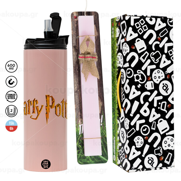 Harry potter movie, Easter candle,Travel Tumbler 2 Lids, with metal straw & cleaning brush & aromatic flat candle (30cm) (PINK)