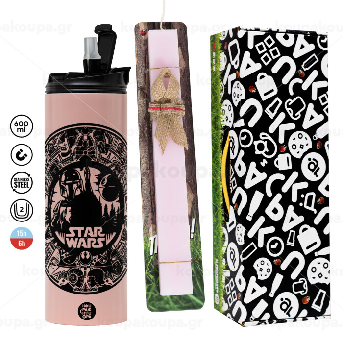 Star Wars Disk, Easter candle,Travel Tumbler 2 Lids, with metal straw & cleaning brush & aromatic flat candle (30cm) (PINK)