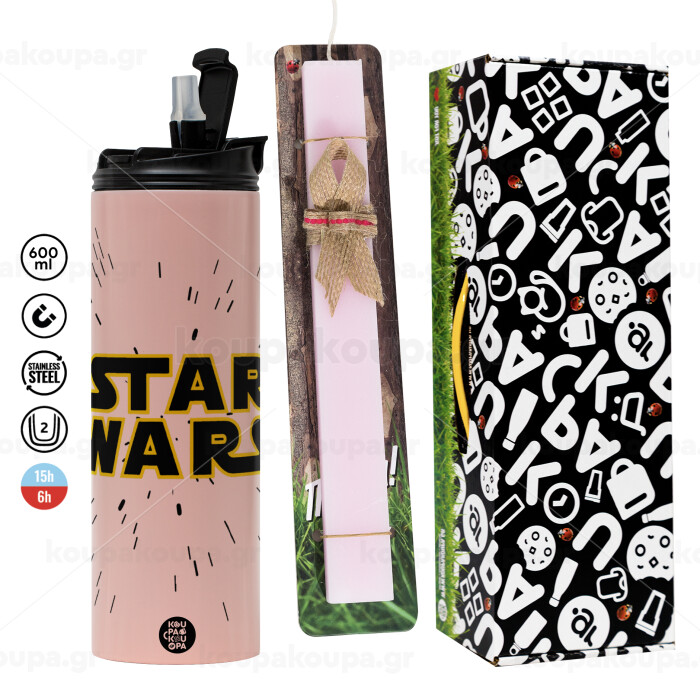 Star Wars, Easter candle,Travel Tumbler 2 Lids, with metal straw & cleaning brush & aromatic flat candle (30cm) (PINK)