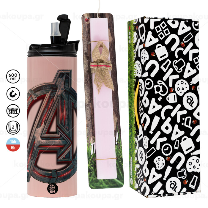 Avengers, Easter candle, Travel Tumbler 600ml Double Wall & aromatic flat candle (30cm) (PINK)