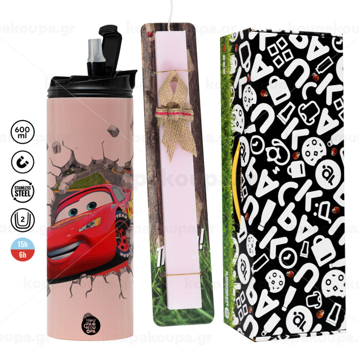 Brick McQueen, Easter candle, Travel Tumbler 600ml Double Wall & aromatic flat candle (30cm) (PINK)