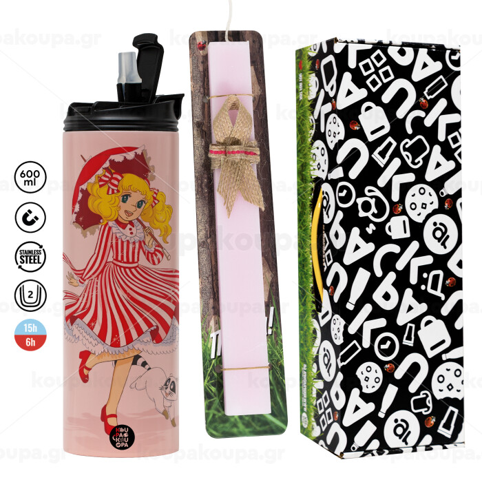 Candy, Easter candle, Travel Tumbler 600ml Double Wall & aromatic flat candle (30cm) (PINK)