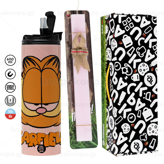 Garfield, Easter candle, Travel Tumbler 600ml Double Wall & aromatic flat candle (30cm) (PINK)