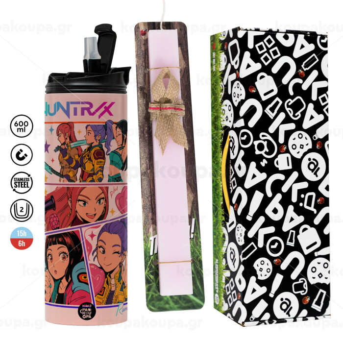 Huntrix Kpop Girls, Easter candle, Travel Tumbler 600ml Double Wall & aromatic flat candle (30cm) (PINK)