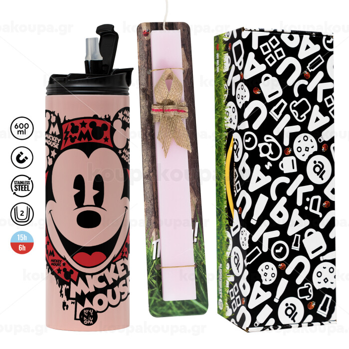 Mickey Mouse, Easter candle, Travel Tumbler 600ml Double Wall & aromatic flat candle (30cm) (PINK)