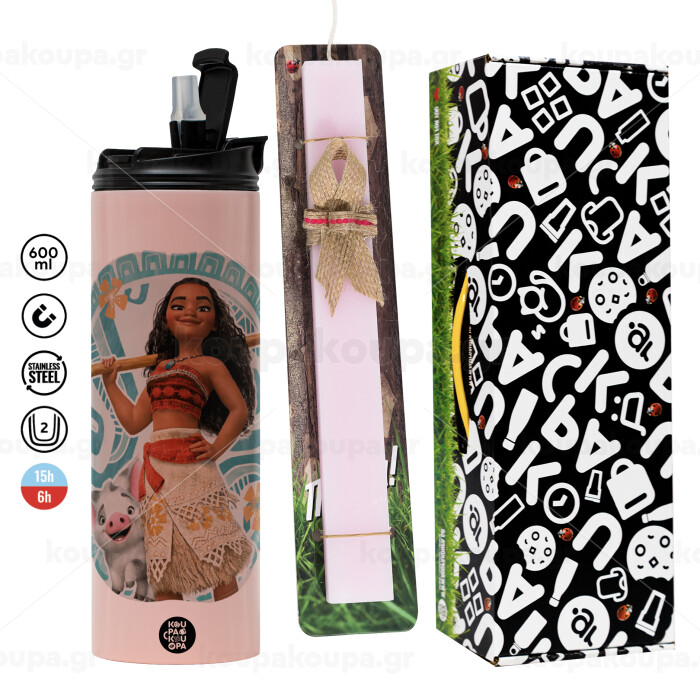 Moana, Easter candle, Travel Tumbler 600ml Double Wall & aromatic flat candle (30cm) (PINK)
