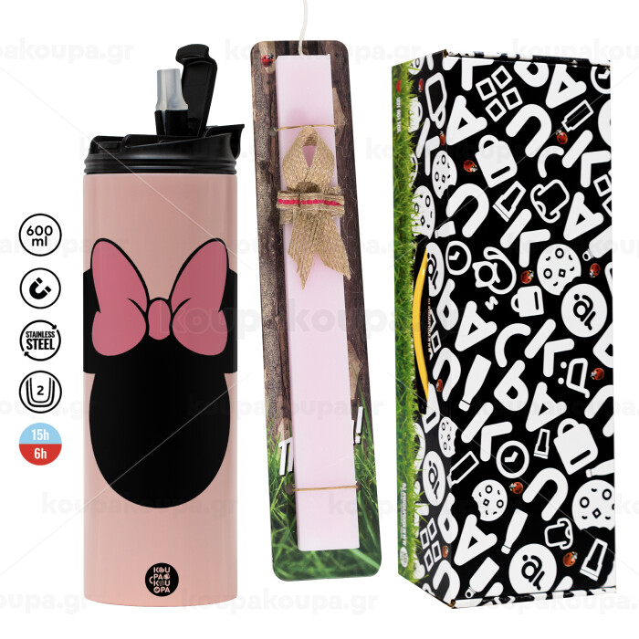 mouse girl, Easter candle, Travel Tumbler 600ml Double Wall & aromatic flat candle (30cm) (PINK)