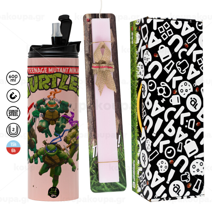 Ninja turtles, Easter candle, Travel Tumbler 600ml Double Wall & aromatic flat candle (30cm) (PINK)