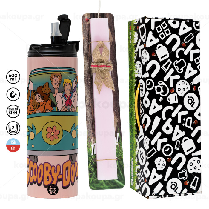 Scooby Doo car, Easter candle, Travel Tumbler 600ml Double Wall & aromatic flat candle (30cm) (PINK)