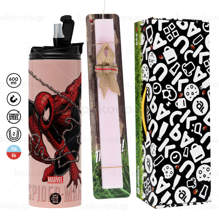 Spider-man, Easter candle, Travel Tumbler 600ml Double Wall & aromatic flat candle (30cm) (PINK)
