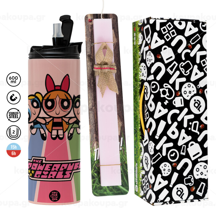 The powerpuff girls , Easter candle, Travel Tumbler 600ml Double Wall & aromatic flat candle (30cm) (PINK)