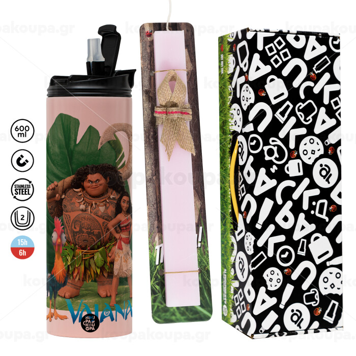 Vaiana, Easter candle, Travel Tumbler 600ml Double Wall & aromatic flat candle (30cm) (PINK)
