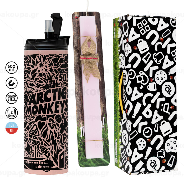 Arctic Monkeys, Easter candle,Travel Tumbler 2 Lids, with metal straw & cleaning brush & aromatic flat candle (30cm) (PINK)