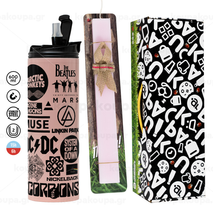 Best Rock Bands Collection, Easter candle,Travel Tumbler 2 Lids, with metal straw & cleaning brush & aromatic flat candle (30cm) (PINK)