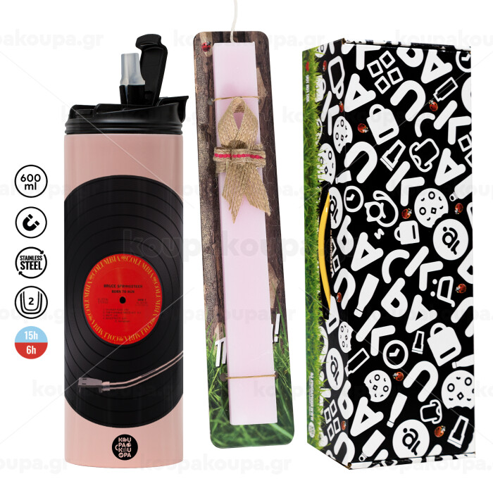 Columbia records bruce springsteen, Easter candle,Travel Tumbler 2 Lids, with metal straw & cleaning brush & aromatic flat candle (30cm) (PINK)