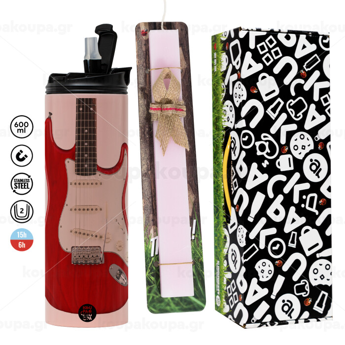 Guitar stratocaster, Easter candle,Travel Tumbler 2 Lids, with metal straw & cleaning brush & aromatic flat candle (30cm) (PINK)