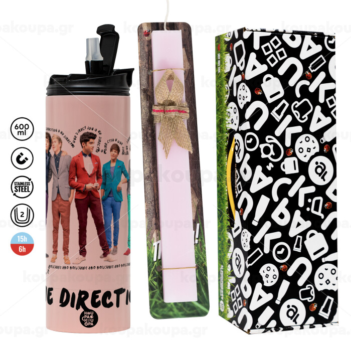 One Direction , Easter candle,Travel Tumbler 2 Lids, with metal straw & cleaning brush & aromatic flat candle (30cm) (PINK)