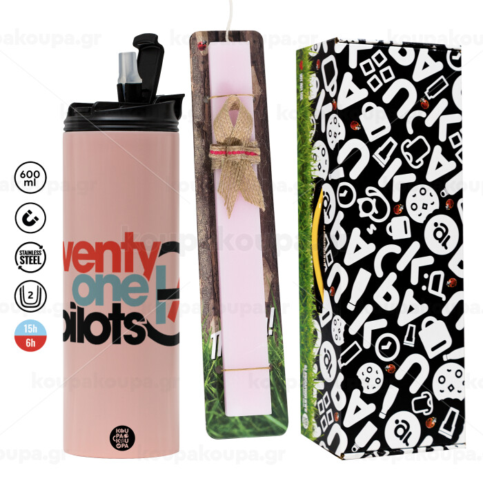 Twenty one pilots, Easter candle,Travel Tumbler 2 Lids, with metal straw & cleaning brush & aromatic flat candle (30cm) (PINK)