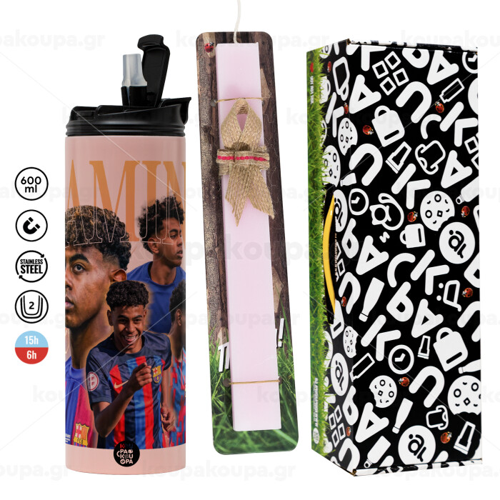 lamine yamal FCB, Easter candle,Travel Tumbler 2 Lids, with metal straw & cleaning brush & aromatic flat candle (30cm) (PINK)