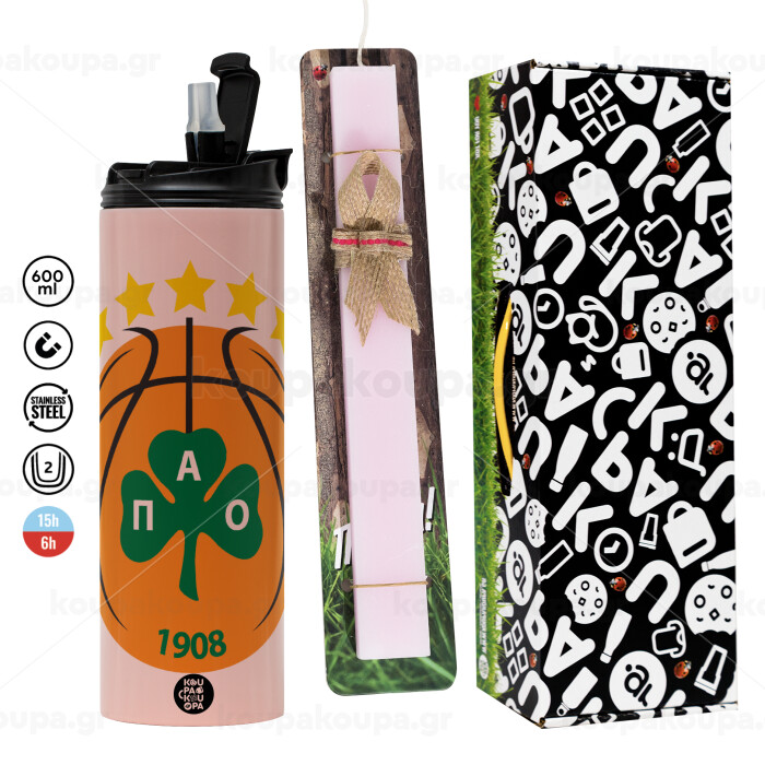 PAO BC, Easter candle,Travel Tumbler 2 Lids, with metal straw & cleaning brush & aromatic flat candle (30cm) (PINK)